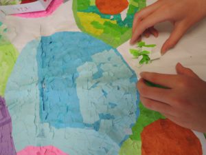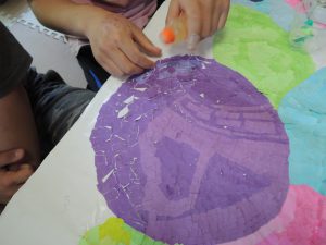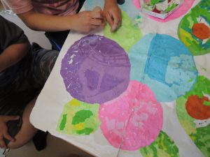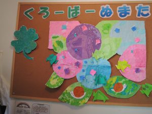 玄関の壁画も、色とりどりの紫陽花が綺麗に咲いています!(^^)!