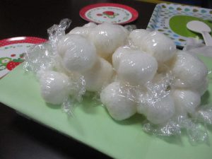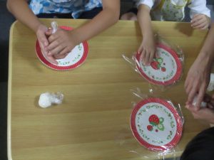 みんなで団子に見立てた小さなおにぎりを作って食べました。