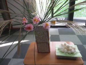 河原で取ってきたススキを飾ってばっちりです?