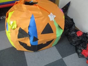 そしてハロウィンでは、みんなで作った飾りを貼って衣装を着て