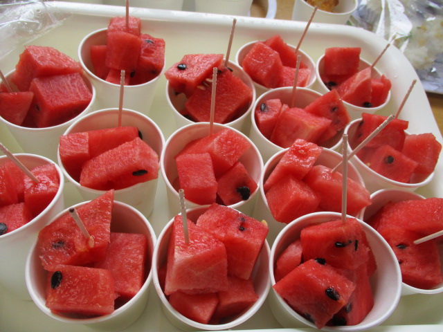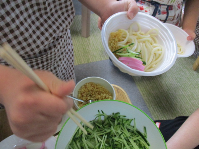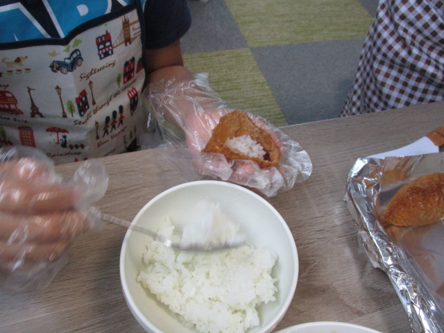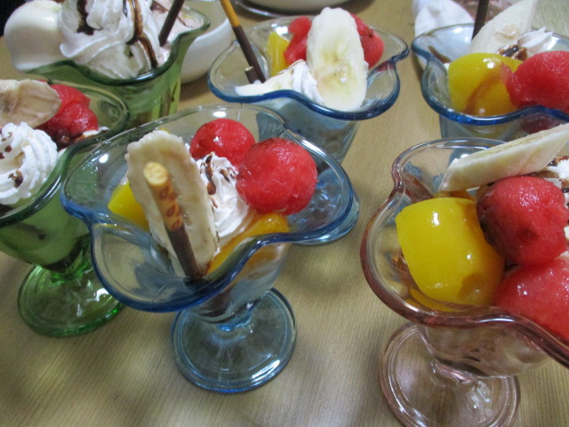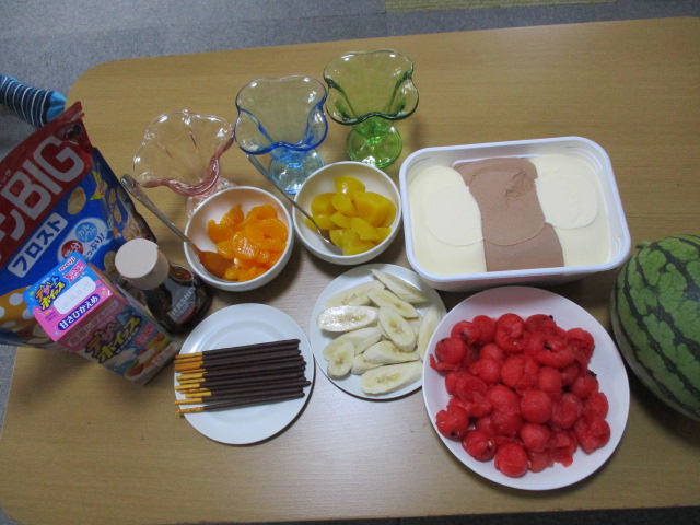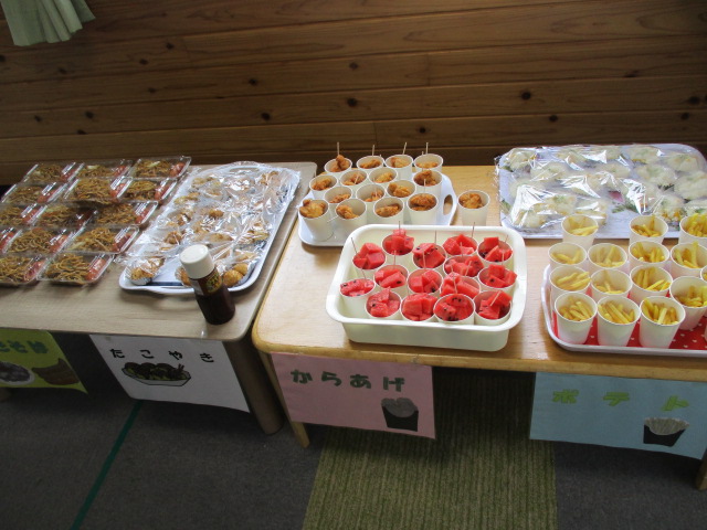 夏休みの恒例になっている夏祭り。朝から担当に分かれ出店の様に作りあげました。チケット交換も、お盆に乗せて運ぶのも、勉強になりました。