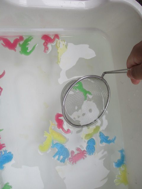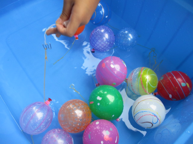 午後の部では、ヨーヨー釣りと、金魚すくいならぬ動物すくい。