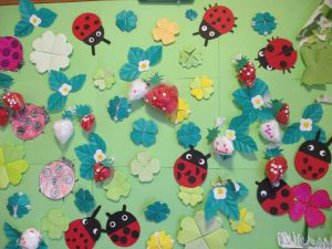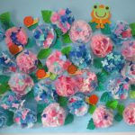 6月はあじさいの製作をしました🐸まず、おはな紙の花びらを一枚ずつ広げていく作業から始めました。薄いおはな紙が切れてしまわない様にゆっくりと慎重に取り組んでいた子ども達。小さい花びらの部分もハサミで上手に切ることが出来ました。色とりどりのあじさいが完成し、玄関がとても華やかに飾られました(*^^)v
