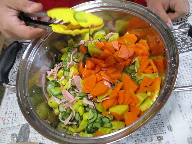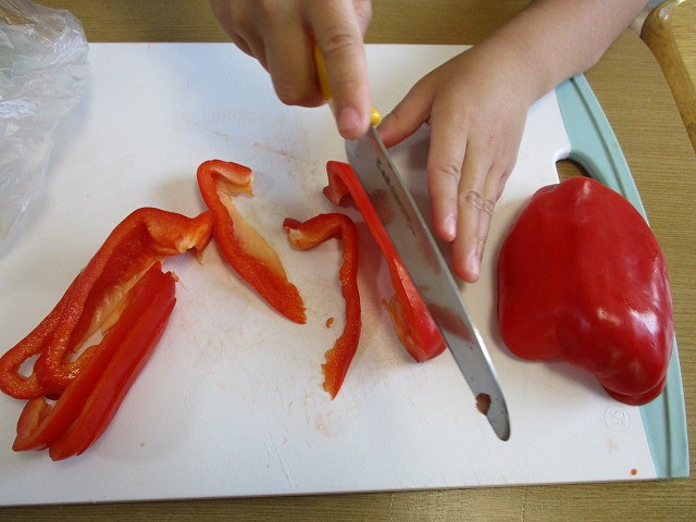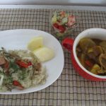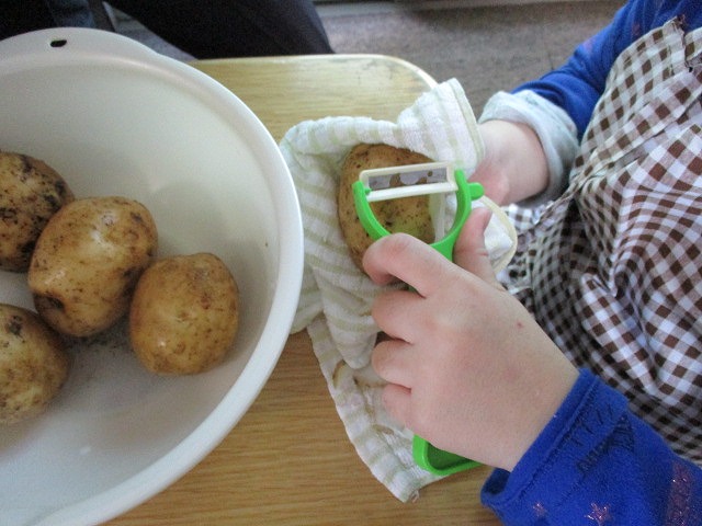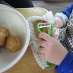 昼食作りでは、パエリア・カレーすいとん・さつま芋のサラダを作りました。