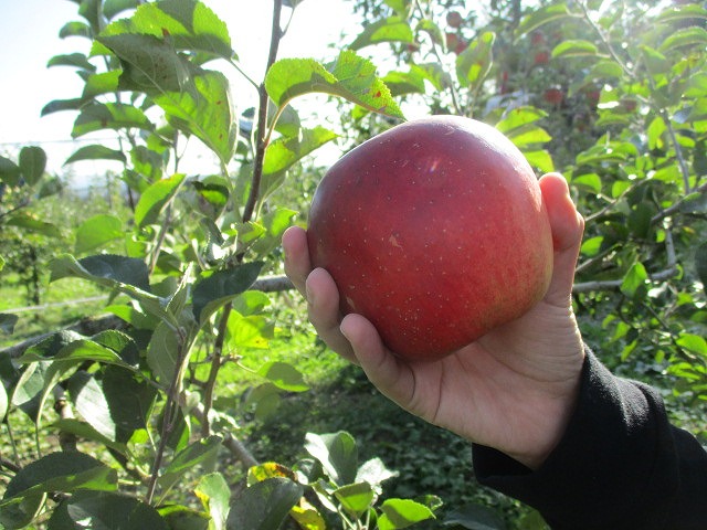 大きく育ったりんご🍎の実、事前学習の様にそ~っともぎ支払いもしっかり出来ました。