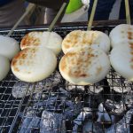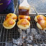 郷土食でもある焼きまんじゅうを炭で焼いて食べようと、近くにある火群庵さんに歩いて行ってきました。炭熾しは大変ですが、焼いて食べるのは格別です。