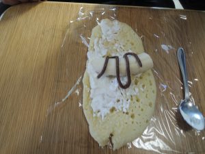 おやつレクでは「まるごとバナナ~チョコレートソースがけ~」
