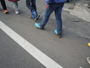 友だちの手を取り誘い合う、団結する姿がありました。?